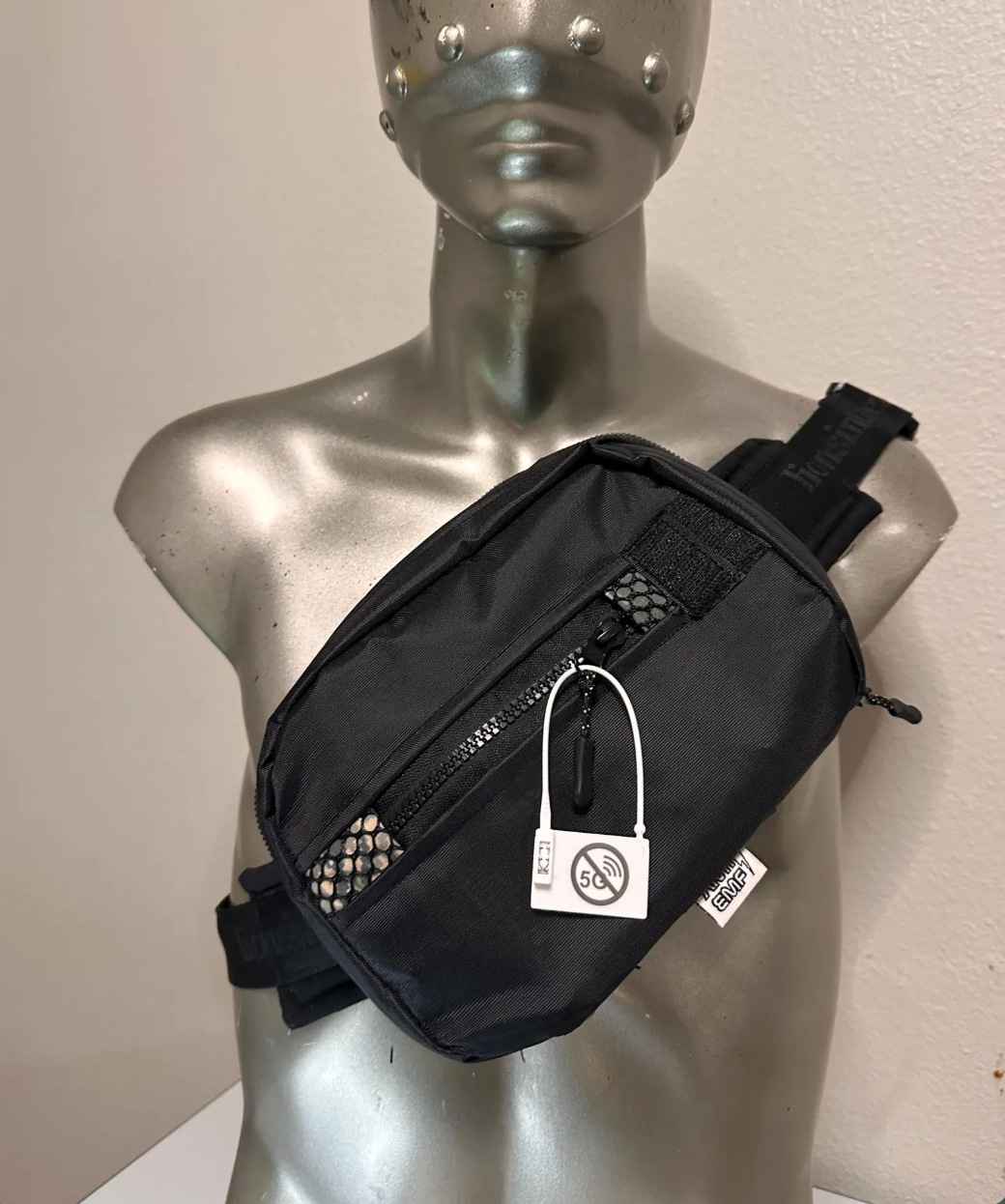 This bag is entirely lined with anti electro magnetic material. Also known as EMF. This application reduces EMF to 80% levels from smart technology. This reduction reduces EMF to safe levels but still allows you to not miss calls for most providers. If you want a cellular signal block (where calls go straight to voicemail) we recommend our signal blocker pouch.